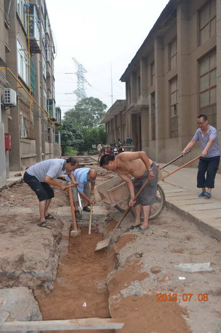 10號(hào)家屬樓是第六分公司于上世紀(jì)80年代中期修建的一棟老家屬樓。6月下旬,10號(hào)家屬樓前出現(xiàn)了地面滲水、裂縫,物業(yè)管理中心迅速派人查找原因,經(jīng)查發(fā)現(xiàn)其原因是地埋上下上管道年久失修滲水造成。分公司領(lǐng)導(dǎo)了解此事后,隨即召開辦公會(huì)議,急職工群眾之所急,在發(fā)展資金緊張的情況下,擠出資金,要求盡快聘請(qǐng)具有資質(zhì)的單位抓緊施工,盡快使10號(hào)樓的住戶正常生活。由于各方努力工作,截止發(fā)稿之日, 10號(hào)家屬樓上下水地埋管道改造工程已近尾聲,同時(shí)完成了樓前的道路返修硬化。這也是我分公司繼15號(hào)樓上下水管道改造之后的又一惠民工程,改善了職工家屬的居住環(huán)境,對(duì)單位的和諧穩(wěn)定具有積極的促進(jìn)作用。