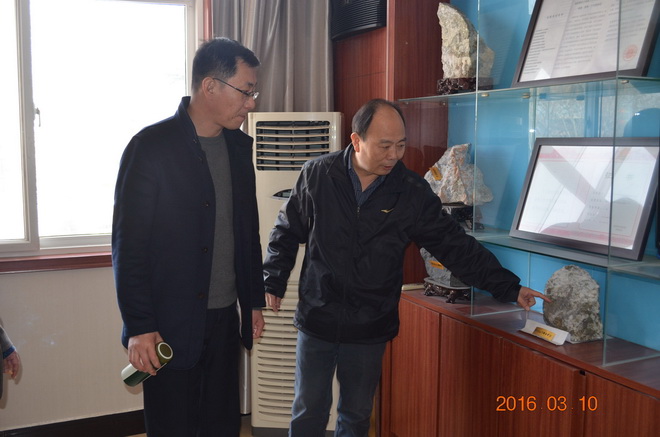 座談會(huì)結(jié)束后,劉總一行來到隊(duì)三樓會(huì)議室,興致勃勃的參觀了我隊(duì)地質(zhì)樣品展臺(tái)。王隊(duì)長(zhǎng)就我隊(duì)近年來企業(yè)文化建設(shè)情況向劉總作了介紹。