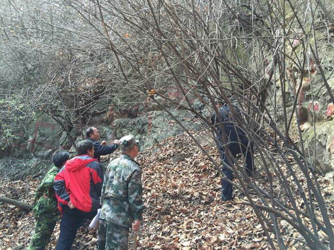 24日一大早,冒著零星小雨,王隊長一行不顧沿途勞累,馬不停蹄趕赴大官長西溝一帶查看礦帶情況。1998年前后,王隊長曾經(jīng)在工作區(qū)周邊的佛坪一帶從事1:5萬區(qū)調工作,創(chuàng)名并建立了佛坪、長角壩巖群,為一套富鋁含石墨的孔茲巖系,與本區(qū)發(fā)現(xiàn)的富含矽線石的晶質石墨礦帶成分非常相近。此次來留壩,已是王隊長第二次前往留壩項目工區(qū)檢查指導工作了,對該地段的地質情況也比較了解。一路上隊長興致很高,和項目組人員愉快交談,詳細詢問路過地段可能形成礦化的斷裂等地質情況及項目組人員的組成、年輕同志的成長進步情況。通過近兩個多小時的跋山涉水,十點半左右到達西溝石墨礦帶地段,王隊長在仔細查看礦帶厚度、產狀等基本情況后,對工程的施工質量及采樣方法提出了具體要求,并就從區(qū)域范圍上對石墨礦帶的賦礦層位與項目組人員交流觀點和看法。