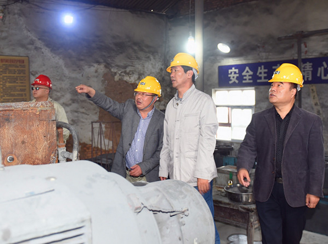 隨后,趙董事長一行在隊(duì)長劉曉東、隊(duì)黨委書記王戰(zhàn)社和總工白和的陪同下驅(qū)車前往我隊(duì)潼關(guān)興地公司秦泰選廠。趙董事長來到礦石堆場,蹲下身子仔細(xì)察看礦石品位,詢問礦山開采情況,走進(jìn)車間檢查生產(chǎn)加工及設(shè)備運(yùn)轉(zhuǎn)情況。向選廠負(fù)責(zé)人了解職工收入,叮囑要牢固樹立安全生產(chǎn)意識;與新聘大學(xué)生親切交談,關(guān)心他們的工作生活,勉勵大家安心工作。趙董事長還走進(jìn)興地公司黨員活動室,檢查黨支部“兩學(xué)一做”學(xué)習(xí)教育開展情況,翻看黨員學(xué)習(xí)筆記,并就深入開展學(xué)習(xí)教育提出了要求。