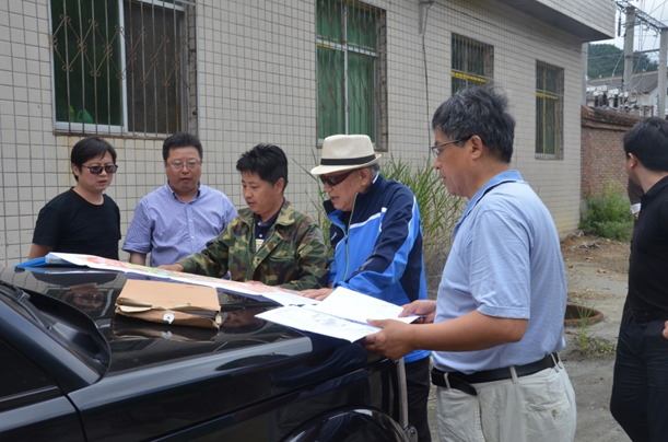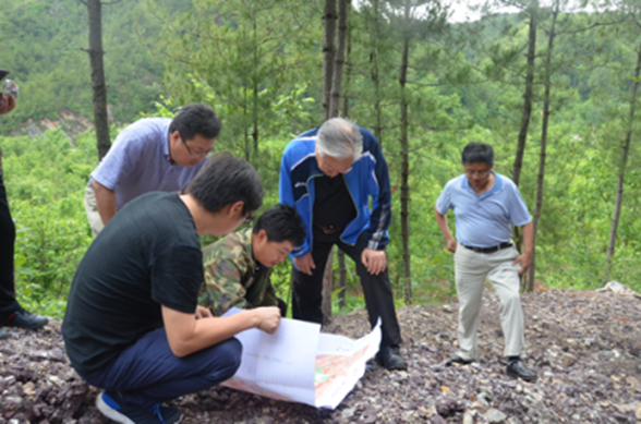 下午二點(diǎn)左右,老部長一行在劉曉東隊(duì)長和總工白和的陪同下到達(dá)洛南縣石門鎮(zhèn)項(xiàng)目部駐地,雖然年近八旬,但精神矍鑠,神采奕奕,不顧鞍馬勞頓,即讓技術(shù)人員將圖紙攤在了汽車引擎蓋上,聽取了隊(duì)長劉曉東、總工白和對商洛地區(qū)紫瑪瑙玉石礦賦存情況及全省寶玉石礦調(diào)查工作進(jìn)展的匯報(bào)。