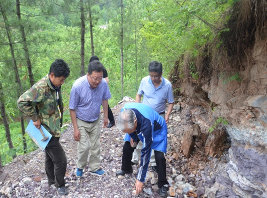 老部長一邊聽,一邊記,詳細(xì)詢問商洛地區(qū)瑪瑙石礦的成因、品質(zhì)、產(chǎn)狀、規(guī)模、位置等情況,并不時(shí)地與技術(shù)人員交換意見,隨后又上山實(shí)地察看了水岔溝、張華溝礦點(diǎn)瑪瑙石礦的產(chǎn)出露頭情況。