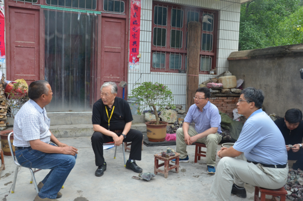 上山察看后,老部長又來張華溝礦點(diǎn)劉吉村村民王新海的院子,察看了當(dāng)?shù)卮迕耖_采的瑪瑙礦石,調(diào)研瑪瑙石礦民采情況,并在村民院子,饒有興趣的與我隊(duì)寶玉石礦項(xiàng)目部技術(shù)人員和村民進(jìn)行了交流,關(guān)切地詢問技術(shù)人員的數(shù)量、生活及車輛租用費(fèi)用等情況。項(xiàng)目負(fù)責(zé)高虔認(rèn)真地一一回答了老部長的問詢。
