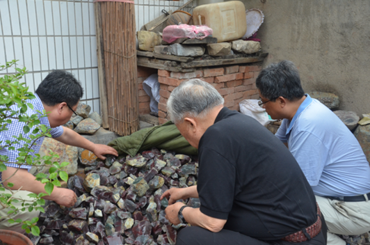 在院子,老部長躬下身子,仔細(xì)察看王新海開采的瑪瑙礦石。看到老王用水潑澆礦石時(shí),老部長風(fēng)趣的夸獎到,你蠻有經(jīng)驗(yàn)啊,是行家嘛!