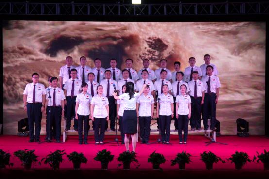 小合唱《黃河大合唱》《走進新時代》《我們走在大路上》《勘探隊員之歌》《大中國》等,一首首耳熟能詳?shù)慕?jīng)典作品,熱情歌頌中華人民堅強不屈的斗爭精神。