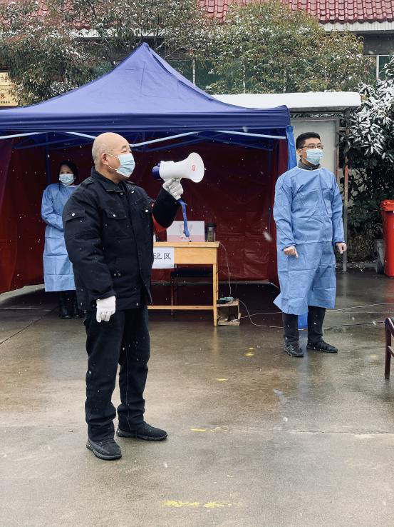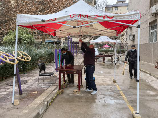 “微信運動幾萬步”,確保每棟樓、每個人做核酸。受疫情影響,大家不能出門,只能待在家里,然而,六隊志愿者日行萬步卻成為常態(tài)。代王基地設置了代東社區(qū)核酸點,西安基地設置了明園社區(qū)核酸點。每次核酸檢測志愿者都要與社區(qū)人員進行對接,協(xié)調社區(qū)共計900人左右的核酸隊伍,維護現(xiàn)場秩序。“12號樓一單元的同志,下樓做核酸了”、“15號樓3單元的同志,下樓做核酸了”,為防止人員聚集,造成交叉感染,院內(nèi)租住的用戶都是志愿者一樓一樓的叫下來的。代王基地院子內(nèi)一共10棟樓,360人,西安基地一共4棟樓,290人。為確保不漏一戶、不漏一人,志愿者每次都要一次次的繞著院子來回的“喊”。除此之外,志愿者要在核酸檢測人員來之前擺好核酸檢測設施,拉好警戒線,連接網(wǎng)絡專線、通電、安裝照明燈,一片都不漏的對場地以及進院子的人員進行徹底消殺。在核酸檢測結束,人員離開場地后,志愿者仍然堅守在崗位上,因為他們還要將醫(yī)用垃圾專員清理拉走,再次對場地及人員做一次徹底消殺。在維護核酸檢測隊伍秩序時,面對不理解、抱怨聲,他們選擇用真情感染者每家每戶。