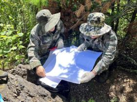 在一周的野外工作中,機(jī)關(guān)4名“穿越”人員聽從項(xiàng)目技術(shù)人員的指導(dǎo),配合一線技術(shù)人員開展地質(zhì)工作。平時(shí)習(xí)慣了辦公室工作的同志,在上山時(shí)雖略顯吃力,但都很努力地追趕項(xiàng)目人員的步伐,堅(jiān)持與一線技術(shù)人員同進(jìn)退。