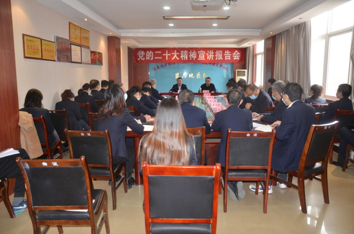 11月29日,陜西地礦集團(tuán)公司黨的二十大精神宣講團(tuán)成員、集團(tuán)公司黨委委員、總會(huì)計(jì)師劉勐帶隊(duì)來我公司宣講黨的二十大精神。公司黨委書記、執(zhí)行董事劉曉東主持會(huì)議。公司領(lǐng)導(dǎo)班子成員以及黨員干部共計(jì)40余人參加會(huì)議。