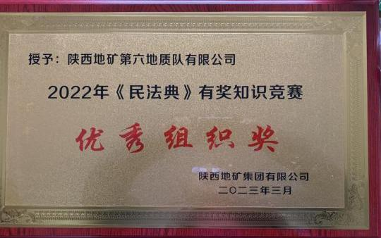 近日,在集團(tuán)公司組織的《民法典》知識競賽活動中,我公司榮獲優(yōu)秀組織獎,獲這一殊榮的還有5家兄弟單位。我公司員工周青、劉曉龍、王敏鵬三名同志榮獲優(yōu)秀獎。