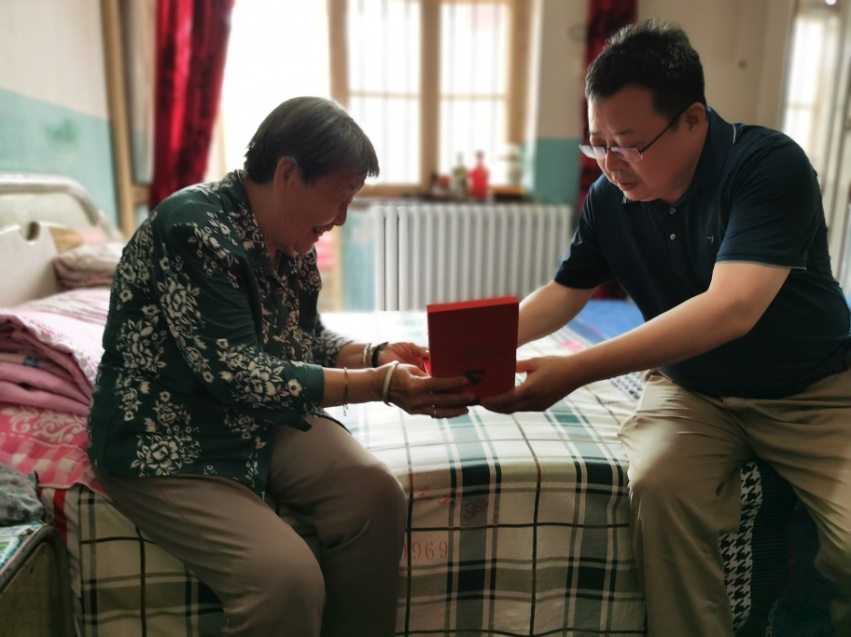 劉曉東一行來到有50年黨齡的老黨員秦啟萍家中,與老人親切交談,詳細(xì)了解其入黨經(jīng)歷、工作履歷、家庭生活等情況,并為她送去“光榮在黨50年”紀(jì)念章,送上節(jié)日祝福,看到老人積極樂觀,劉曉東十分欣慰,叮囑她保重身體,安享晚年。