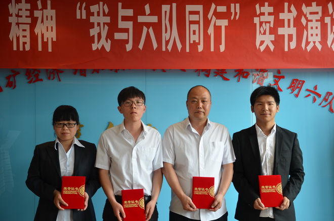 激揚(yáng)的青春最美麗。選手們的激情演講深深地打動(dòng)了在場(chǎng)的每一位評(píng)委和觀眾,贏得了一陣陣熱烈的掌聲。演講結(jié)束,勞動(dòng)人事部選手馮雪榮獲一等獎(jiǎng),地調(diào)所選手夏含、雷扛分獲二等獎(jiǎng),后勤服務(wù)中心黃鷹、經(jīng)濟(jì)工作部選手許婷婷、工程公司選手劉科科分獲三等獎(jiǎng)。我隊(duì)隊(duì)長(zhǎng)王根寶為獲獎(jiǎng)選手頒發(fā)了榮譽(yù)證書(shū)。黨委書(shū)記王戰(zhàn)社為獲得2015年度的優(yōu)秀團(tuán)員、團(tuán)干頒發(fā)了榮譽(yù)證書(shū)。